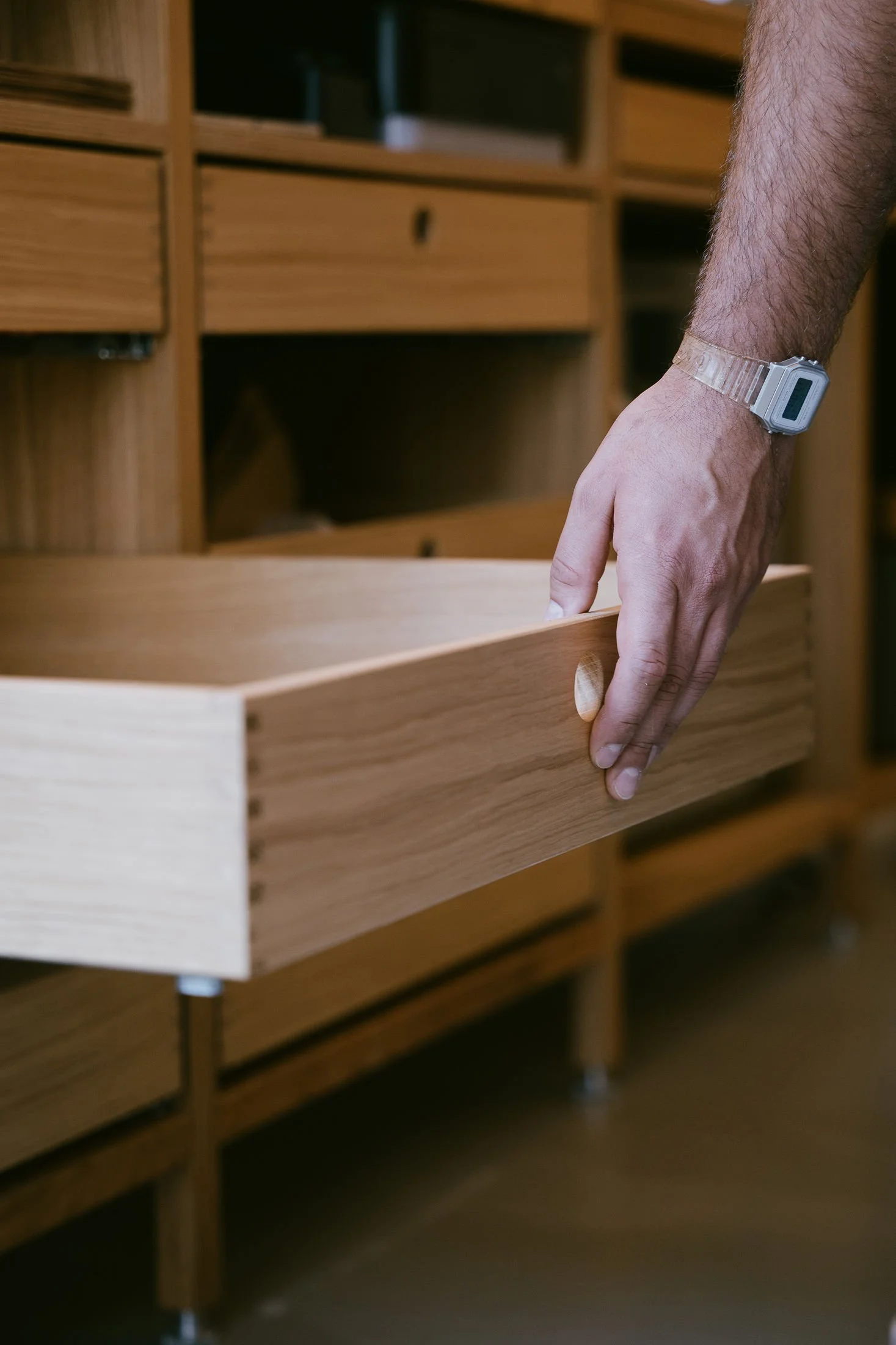 Für die Sauerteigbäckerei “Bobo Brot” durften wir eine tolle Theke für ihren Laden in Weinheim planen und bauen. Aus nachhaltigen Materialien aus der Region entstand ein toller Hingucker für Marvin und Annick, die den Laden voller Leidenschaft betreiben. Die Massivholzelemente aus Eiche geben dem Möbel die Stabilität. Die Flächen aus Linoleum verleihen der Theke eine wunderschöne Wärme und die Arbeitsfläche aus Edelstahl ist die perfekte Lösung für eine hoch beanspruchte Oberfläche.